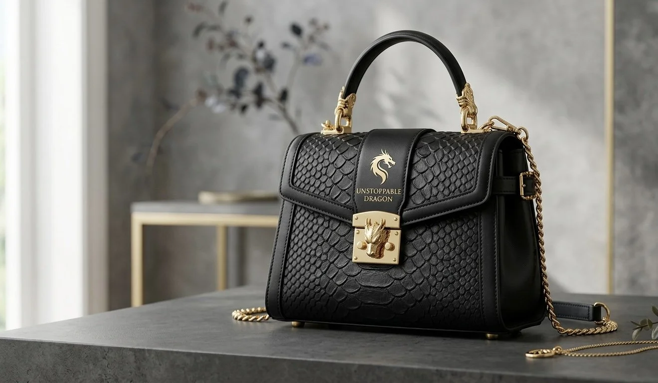 • Assinatura Dracônica: As laterais exibem um padrão de escamas entrelaçadas, enquanto a alça de corrente em latão envelhecido é finalizada com uma cabeça de dragão meticulosamente esculpida à mão.